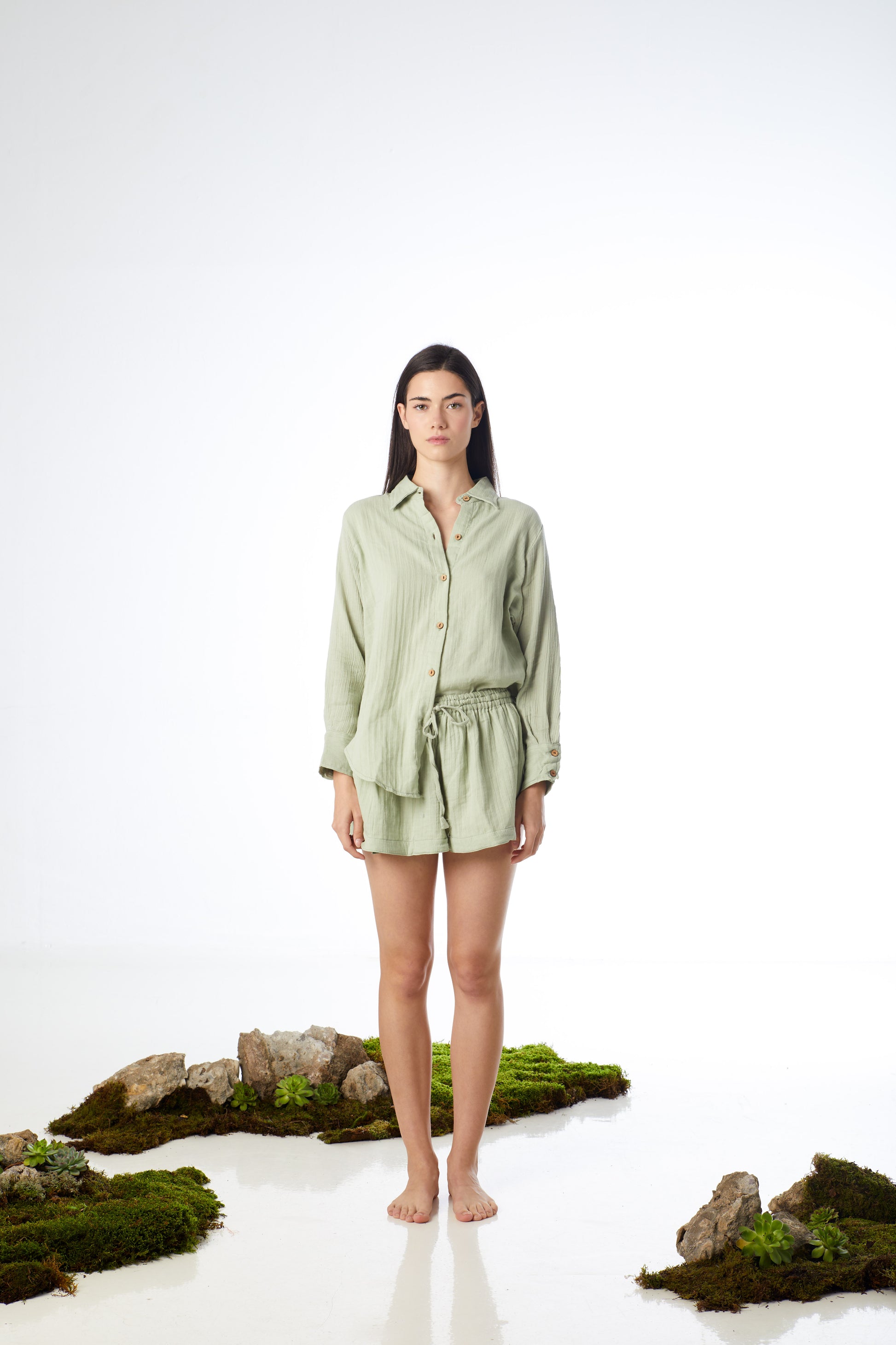 Disfruta del máximo confort con este conjunto fresco y versátil, confeccionado en algodón doble suave y transpirable. Ideal para un look casual y elegante al mismo tiempo.Un conjunto práctico y estiloso que no puede faltar en tu armario.