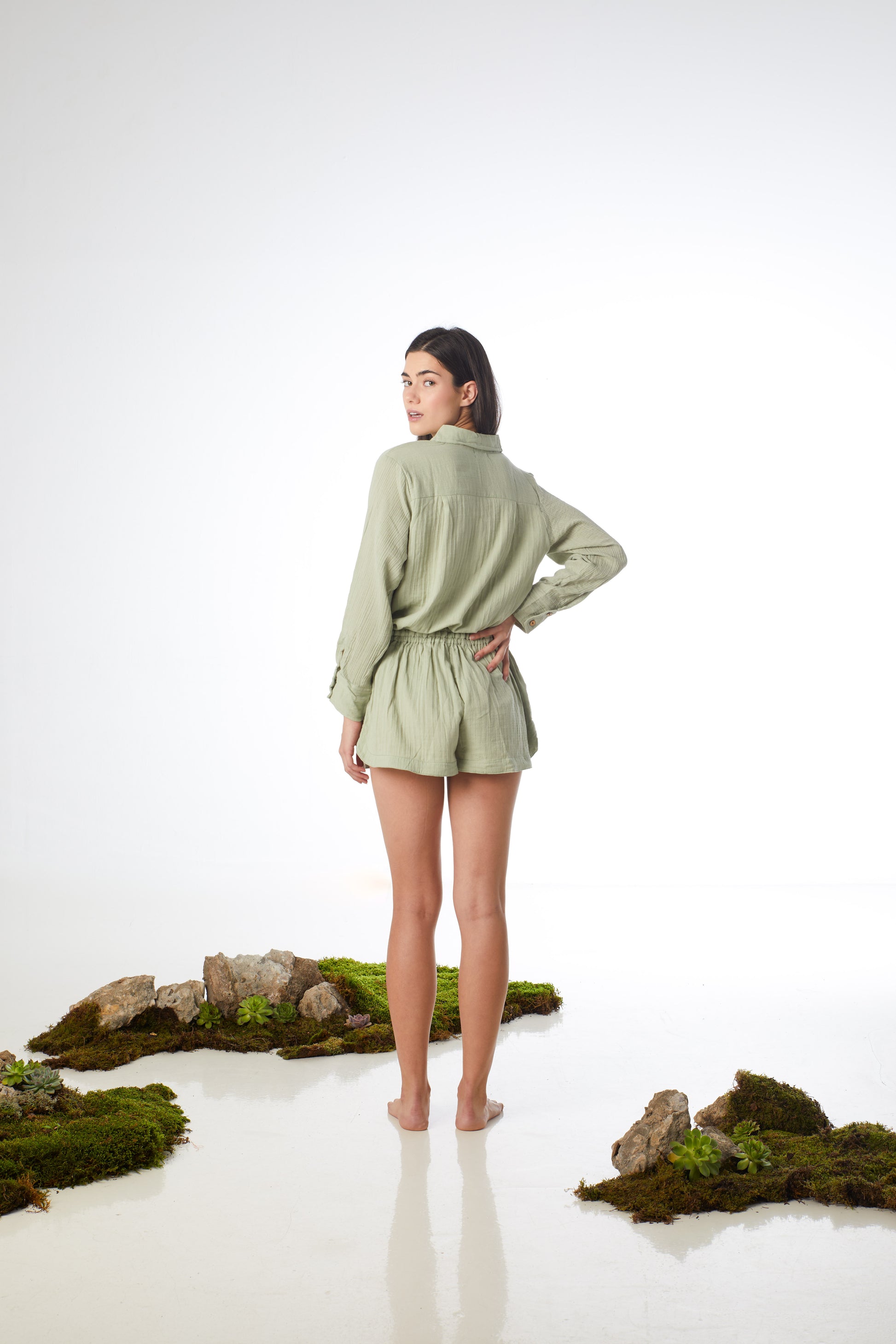 - Pantalón corto a juego, ligero y con elastico suave en la cintura adaptable para muchas tallas.